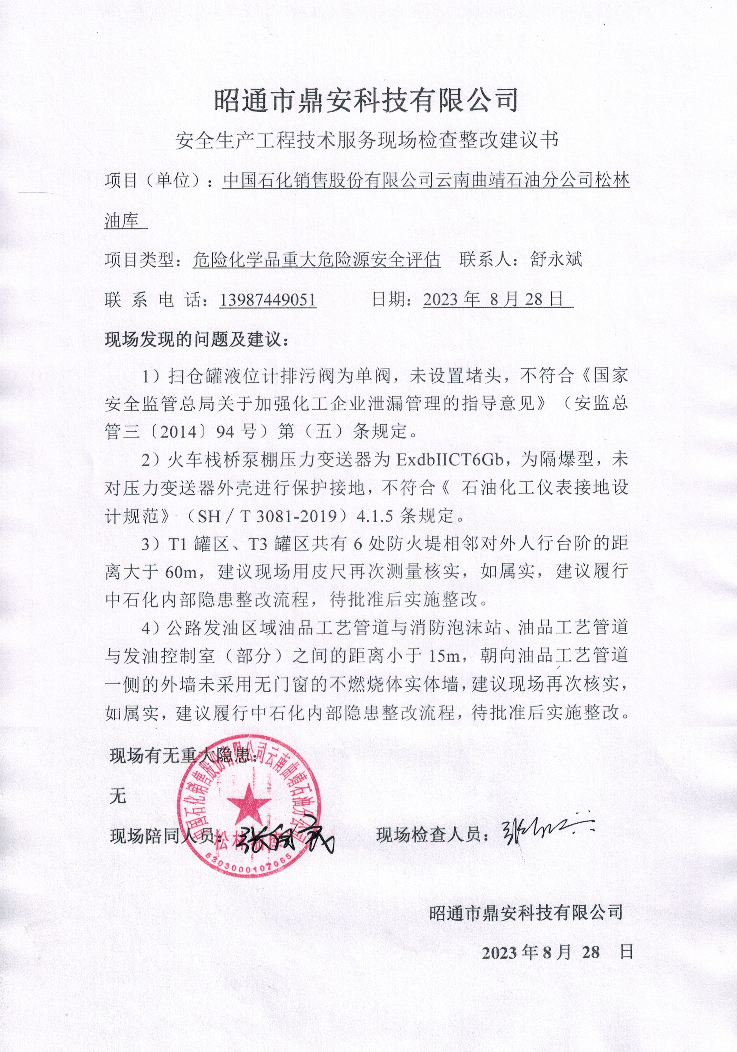 中國石化銷售股份有限公司云南曲靖石油分公司松林油庫危險化學品重大危險源安全評估報告
