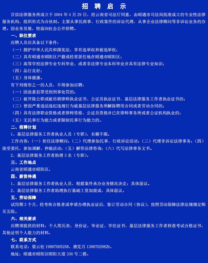 昭陽(yáng)區(qū)百信法律服務(wù)所招聘啟示