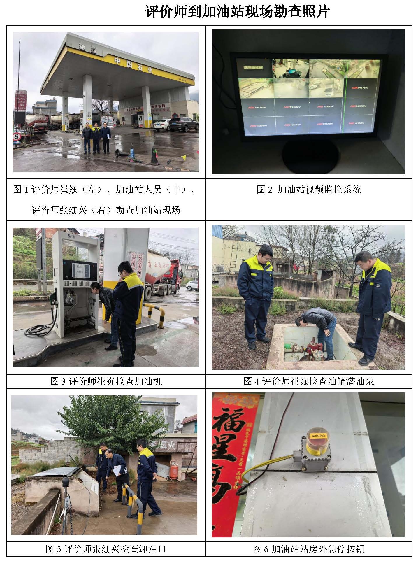 現場勘查情況 | 拍加油站及周邊平面照片,查看加油站周邊環(huán)境,查看加油區(qū)、油罐區(qū)、液位計、配電室現場情況,查看安全管理資料。 | |||||||