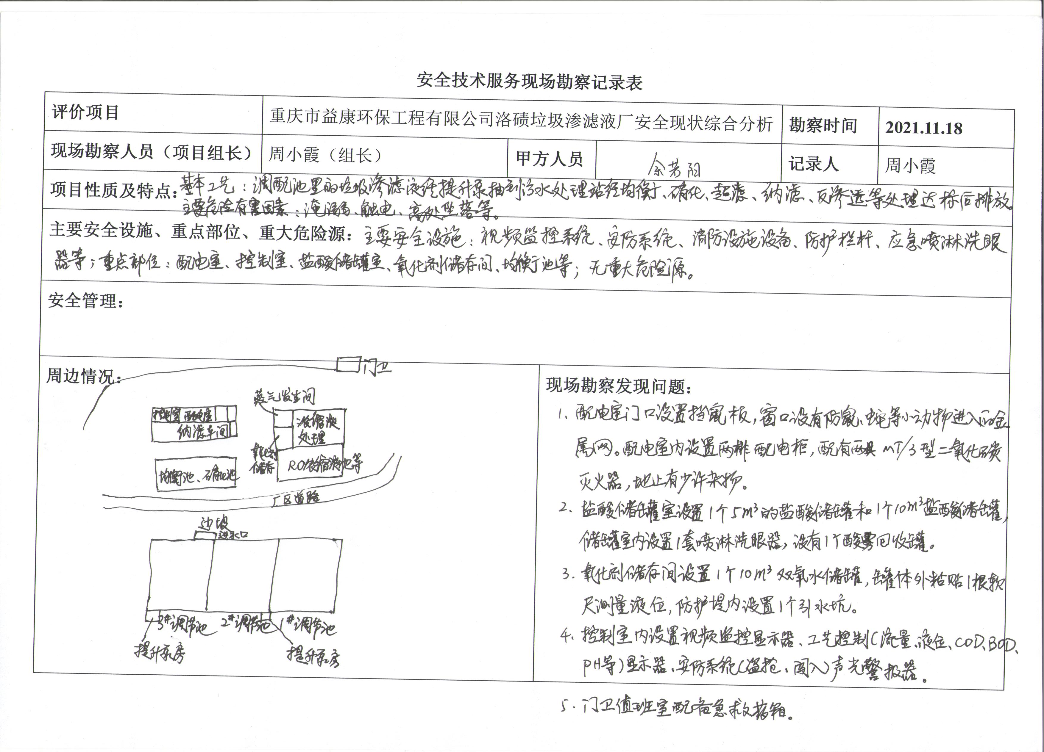 現(xiàn)場勘查情況 | 重慶市益康環(huán)保工程有限公司洛磧餐廚污水廠安全狀情況 | |||||||