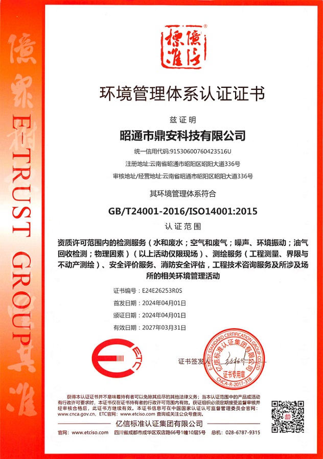 環(huán)境管理體系認(rèn)證證書